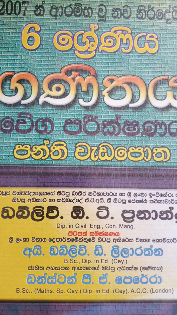 ගණිතය : වේග පරීක්ෂණ වැඩ පොත 6 ශ්රේණීය